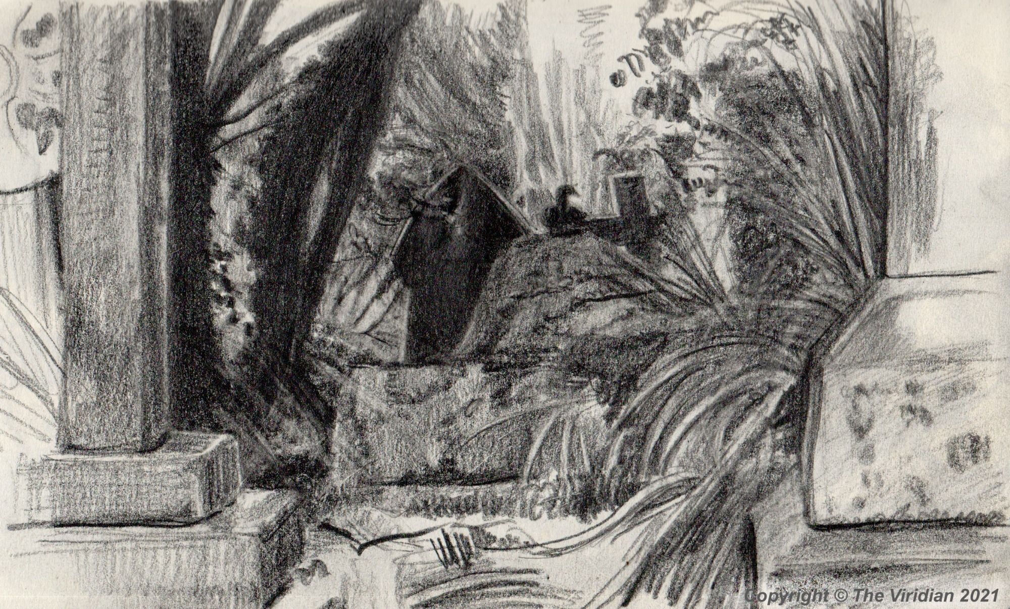 In the Shadow of the Yews the Robin Alights on the Black Tomb Stone